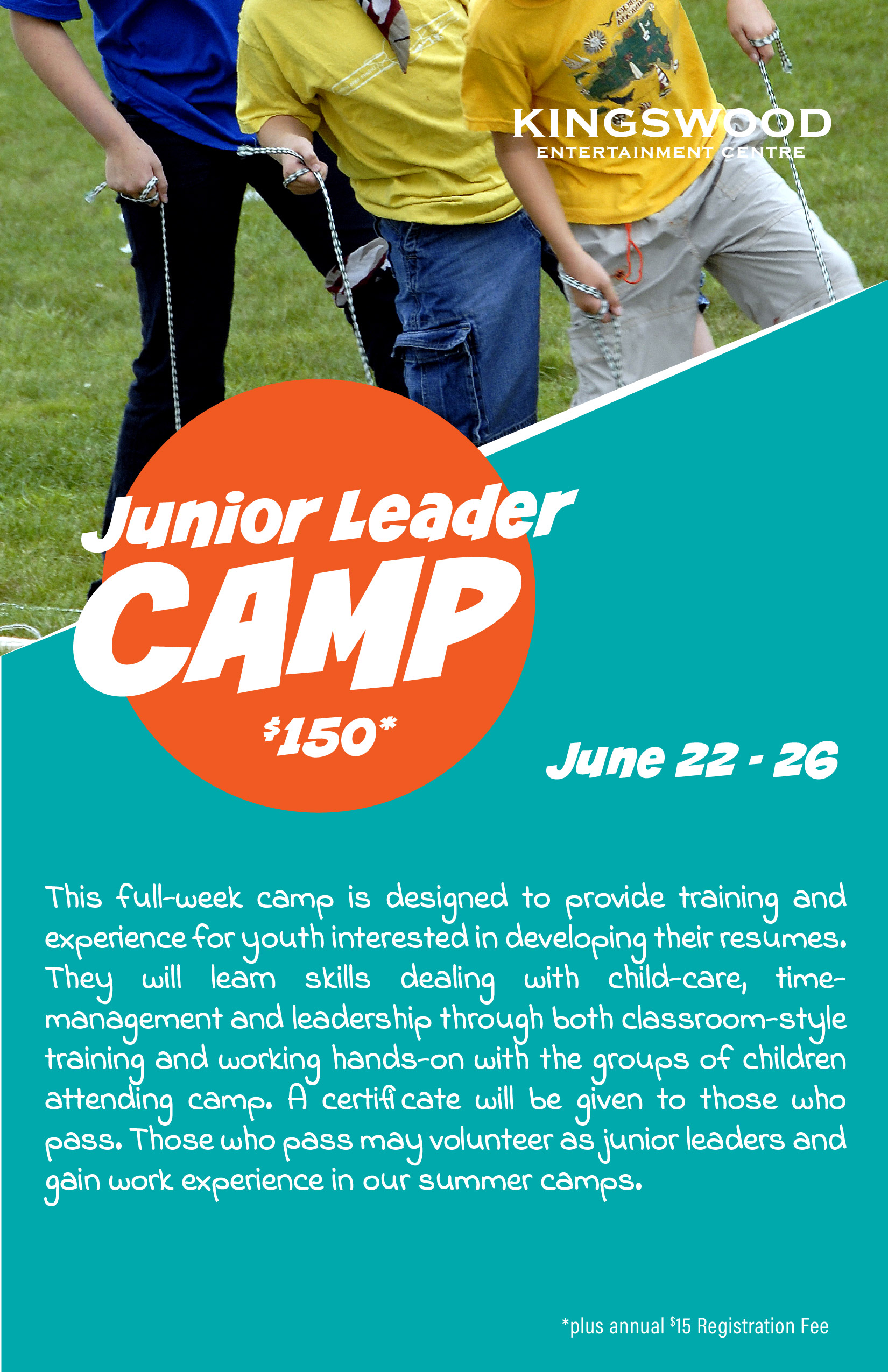 Junior Leader Camp: Level up from camper to coach—build your resume and lead the way this summer! Ages 13-15 years. Register online here.